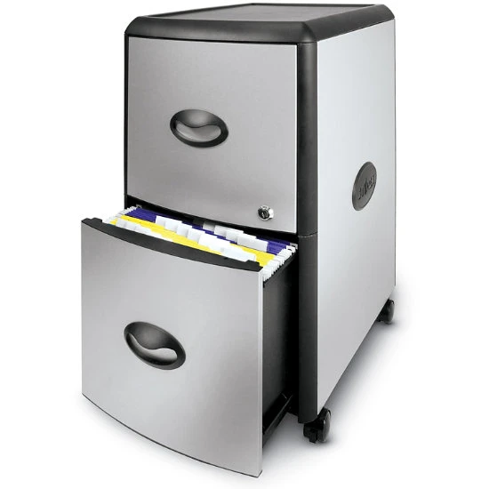- Heavy-duty plastic construction with brushed steel drawer fronts and sides.