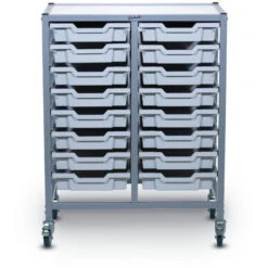 Dynamis Double Cart Set 5 Silver (44) W/ 3″ 2 Braked Castors & Optional Feet And 16 Shallow F1 Trays