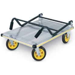 - Moves on four 4″ reinforced plastic casters with gray nonmarring polyurethane tread (two locking, and two non-locking).