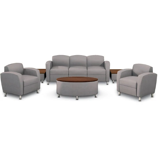 - Designed with soft curves and generous armrests for a contemporary look.