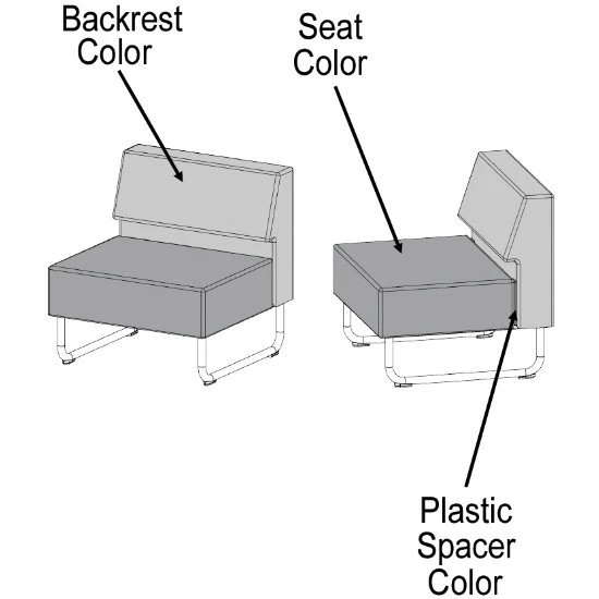 - Partial length plastic spacers, available in a choice of color, provide a 1/2″ gap between backrest and seat to allow debris to fall directly to the floor for janitorial services.