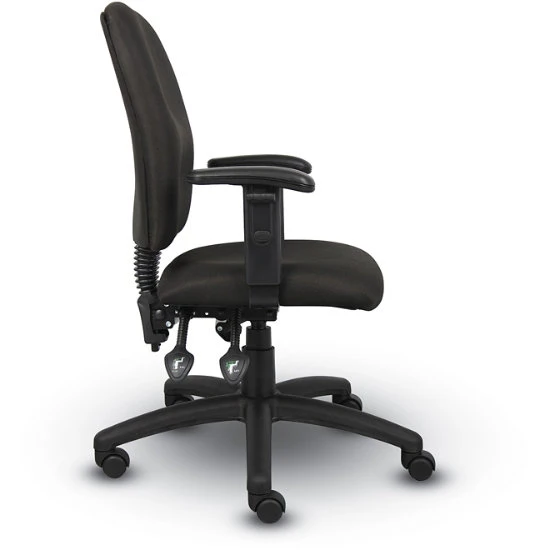 - Lumbar supporting adjustable height backrest with angle adjustment locks in a full range of different positions to relieve strain and improve comfort.