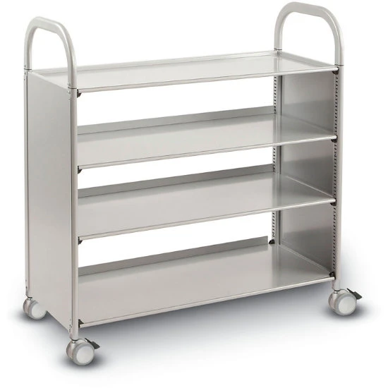 - Heavy-duty locking dual-wheel casters provide mobility.