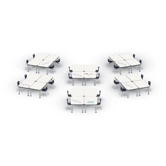 - Desks feature 1″ thick wood composite worksurface with a white dry-erase marker compatible laminate finish, and 3mm edge band.