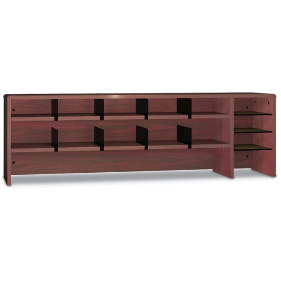 - Literature organizer with adjustable hardboard shelves; includes label holders.