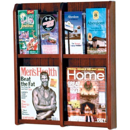 - 4 magazine-size slots; up to 8 brochure-size slots using acrylic slot dividers.