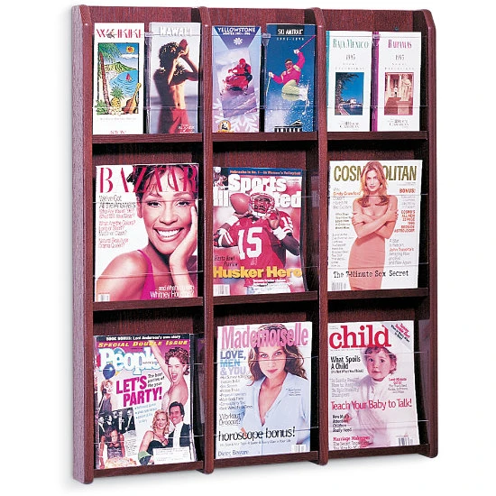 - 9 magazine-size slots; up to 18 brochure-size slots using acrylic slot dividers.
