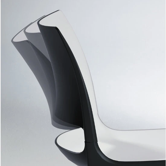 - Two-piece injection-molded polypropylene seat and back are heavily contoured and provide the appearance of a single piece shell, but are connected with articulating mechanism.