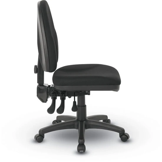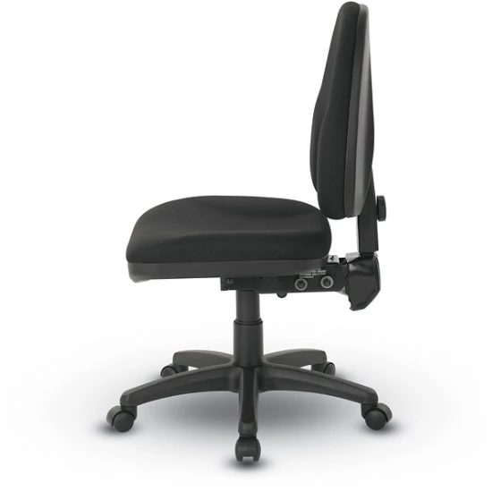 - One-touch pneumatic seat height adjustment, dual-function control levers adjust back angle relative to seat, and forward-tilt.