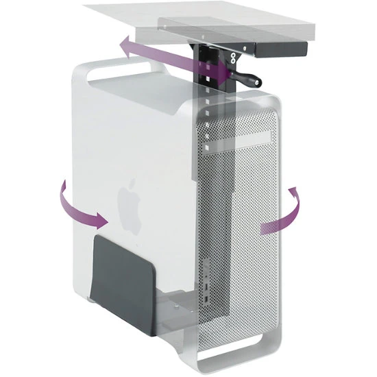 - Vertical, adjustable, steel CPU holder with anti-skid pads.