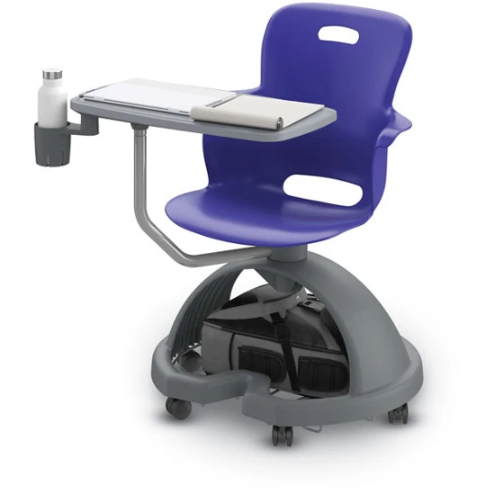- Includes non-handed tablet arm with pencil stop, and cup holder.