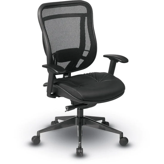 Executive High-Back Chair W/ Breathable Mesh Back & Leather Seat W/ Industrial Steel Finish Angled Base