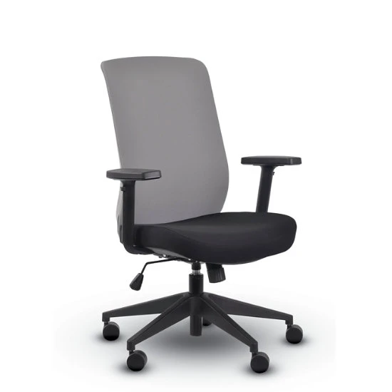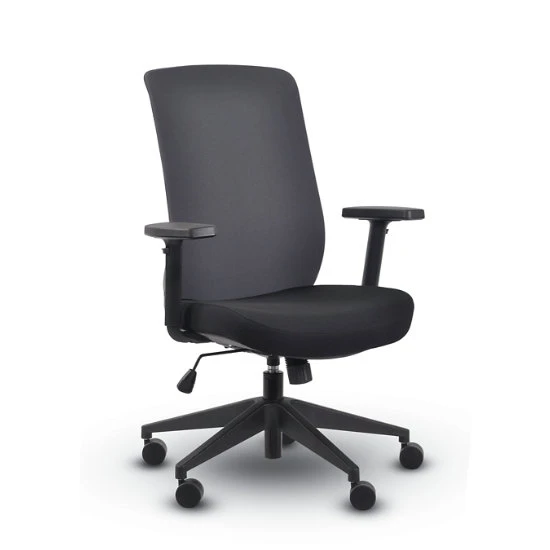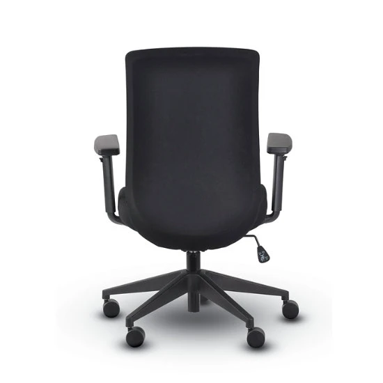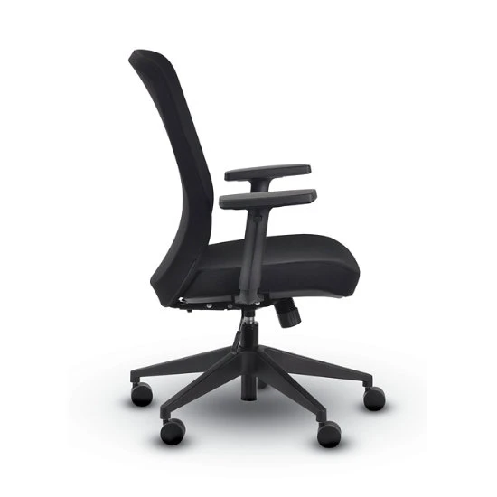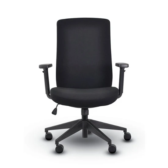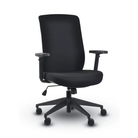 - Height adjustable black fabric waterfall-front seat features synchro-tilt with tilt-tension and tilt lock controls.