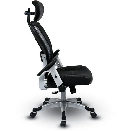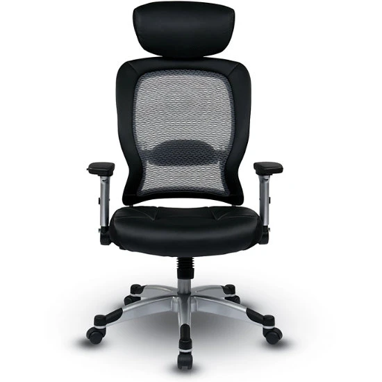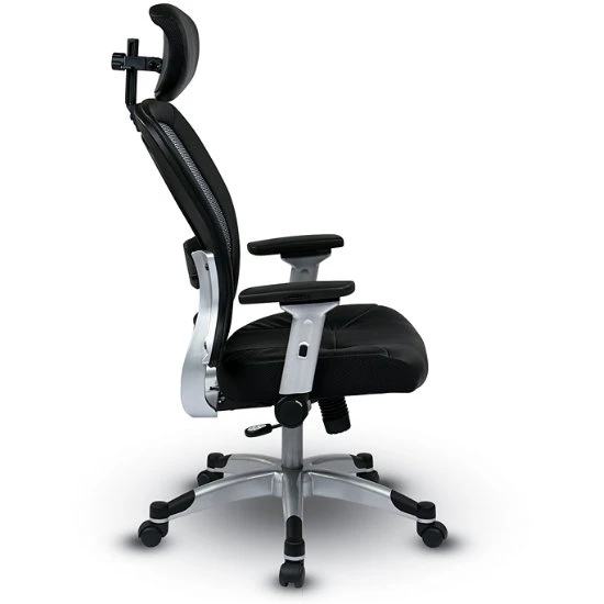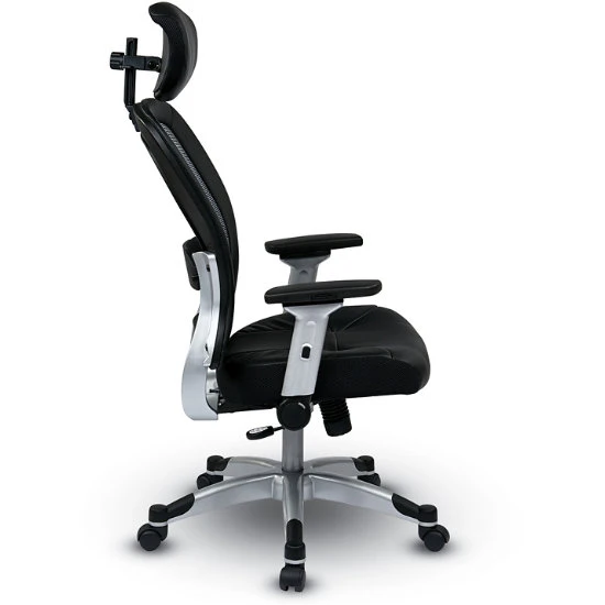 Light Air Grid® Back Chair W/ Bonded Leather Seat, 4-Way Adjustable Flip Arms, Adjustable Headrest And Platinum Base