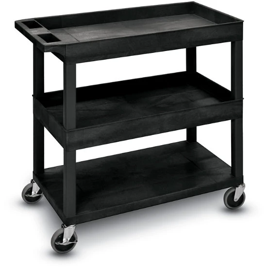 Luxor EC Series Plastic Utility Cart – 3 Shelf (Tub/Tub/Flat)