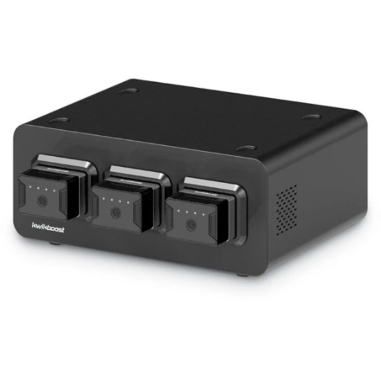 - 3-battery charging station charges up to three completely drained batteries in approximately 2 hours, includes Kensington security lock for worksurface mounting (lock not included), and plugs into standard wall outlets; stackable up to 2 high.