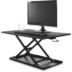 - Height adjustable steel frame with powder-coat paint finish lifts vertically within its own footprint to save space.