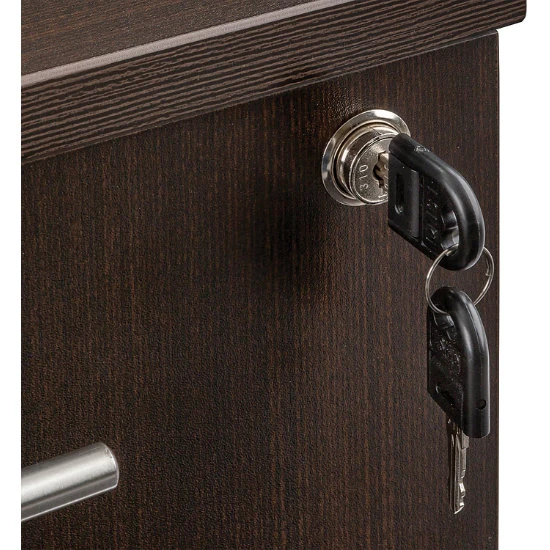 - Locking drawers operate smoothly on full-extension ball-bearing suspension.