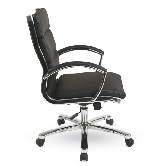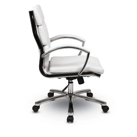 - Heavy-duty chrome finished base with dual-wheel carpet casters.
