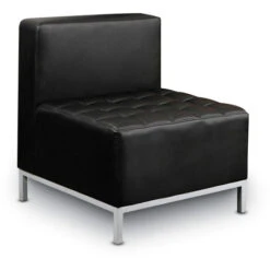 - Black polyurethane faux leather with 2-3/4″ thick foam padding and attractive quilted seats.