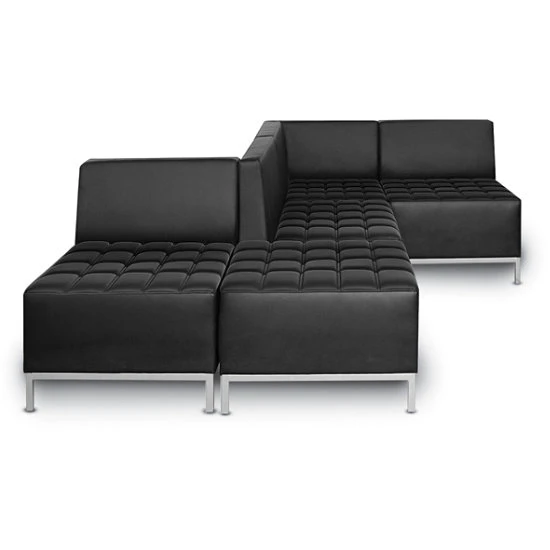 - Black polyurethane faux leather with 2-3/4″ thick foam padding and attractive quilted seats.