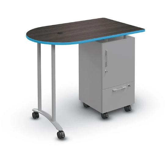 - Highly mobile platinum finished steel base includes locking storage cabinet, and file drawer with separate lock and silver finished door/drawer pulls.