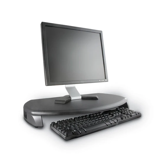 - Reduces neck and eye strain by raising the viewing level of monitors.