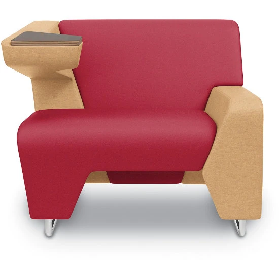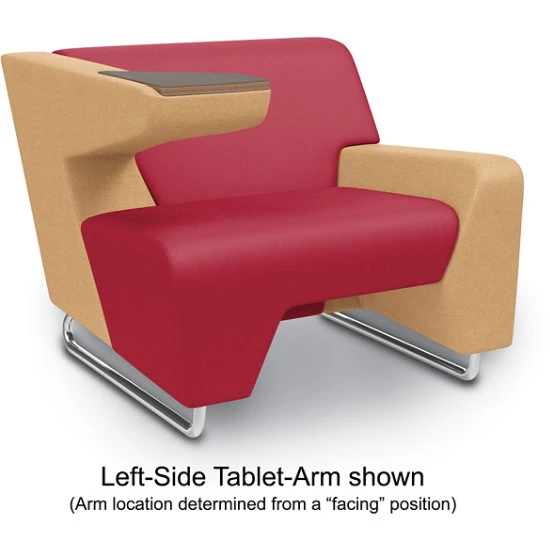 - Padded tablet-arm features high-pressure laminate worksurface with clear lacquered edges over 15mm Baltic Birch plywood core and phenolic backer to resist moisture; tablet-arm is field replaceable.