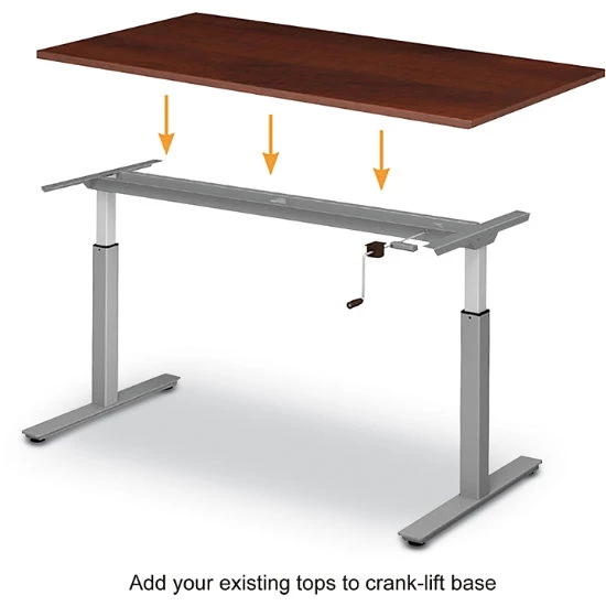 - Add your existing tops to crank-lift base to create sit-to-stand tables