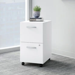 - Includes two file drawers on ball-bearing slides able to accommodate letter or legal-size files.