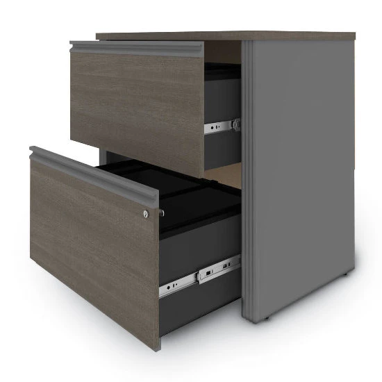 - Drawers operate on full-extension ball-bearing slides, and accommodate letter or legal-size files; uses lower drawer lock to secure both drawers.