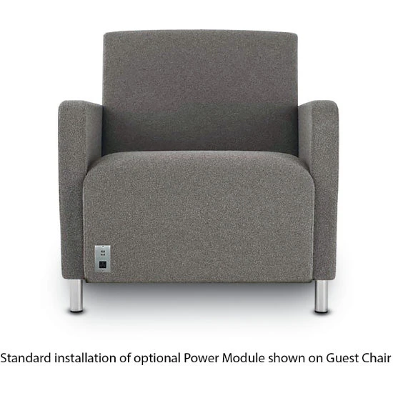- Available with installed power module, including 1 AC/ 2 USB ports, and 4’8″ cord (a single power module will be installed at the bottom right of front panel as observed from a seated position).