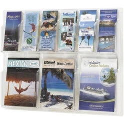 - One-piece thermoformed plastic with pockets able to hold 1-3/4″ of printed material.