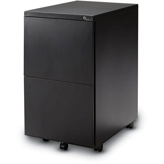 - Powder-coat paint finished steel file features five casters for mobility and stability.