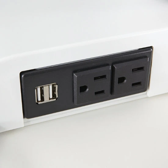 - White powder-coated steel construction with matching laminate platform featuring black edgeband.