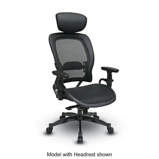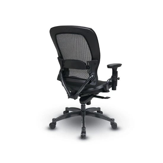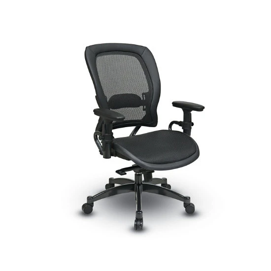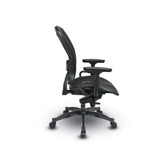 Space® Seating Breathable Mesh Back And Bonded Leather Seat Manager’s Chair With Adjustable Arms, Adjustable Lumbar And Gunmetal Finish Base