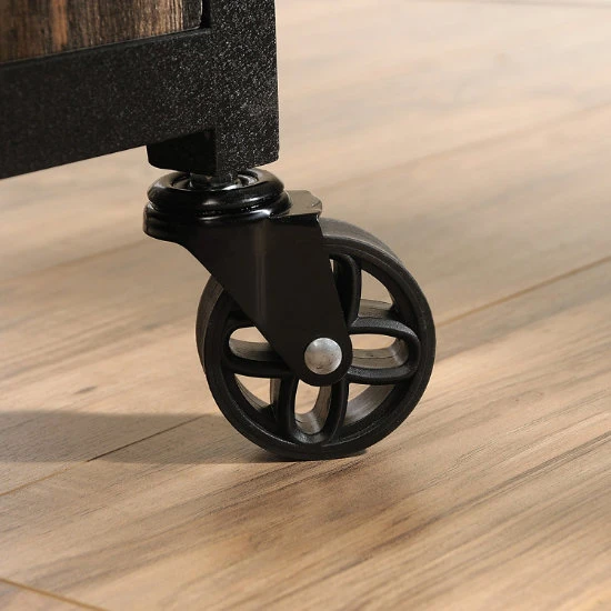 - Textured powder-coated metal frame with decorative locking casters.
