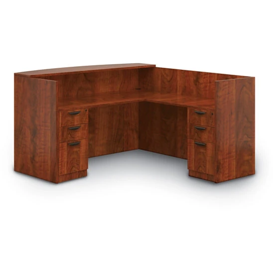 Superior Laminate L-Shaped Reception Station: Shell, Top, Return, & (2) BBF Pedestal
