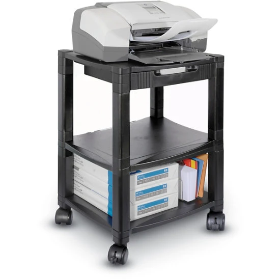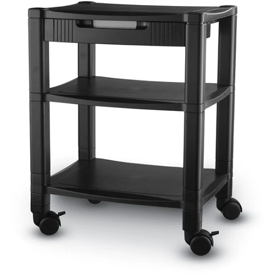 Three Shelf Desk-Side Mobile Printer Stand With Organizing Drawer