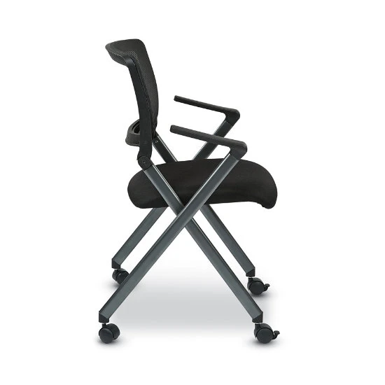 WorkSmart® FC Series Folding Chair W/ Flex Back, Black Fabric Seat & Titanium Frame